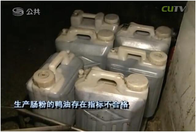龍崗區(qū)食藥局食品安全監(jiān)管科副科長崔世峰:“從檢查和抽樣結(jié)果來看,食品廠當(dāng)時使用的鴨油是屬于來源不合法。目前稽查大隊(duì)已經(jīng)對鴨油進(jìn)行立案并查處。檢測結(jié)果表面生產(chǎn)腸粉的鴨油存在指標(biāo)不合格,來源不明等問題。”